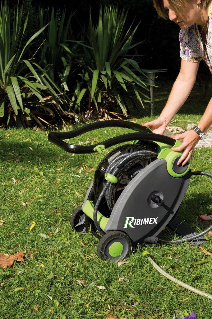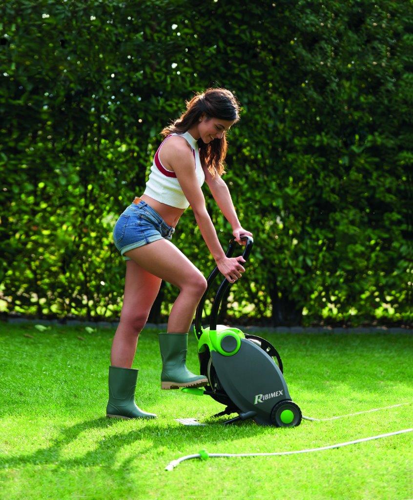 Ce nouveau dévidoir Ribimex offre un grand confort d’utilisation avec un enroulement du tuyau qui s’effectue facilement et sans fatigue, grâce à la pédale située à l’arrière de