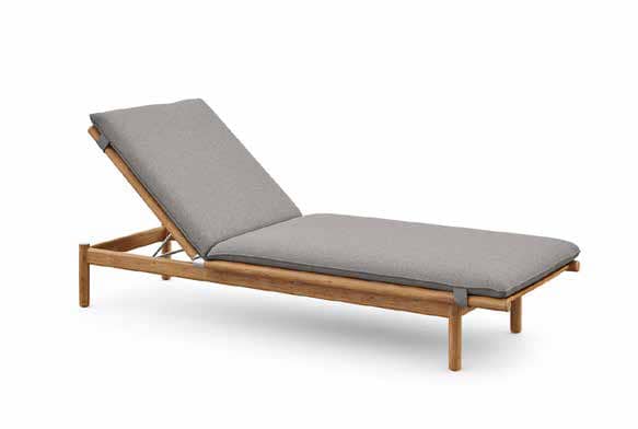 En teck, avec un matelas moelleux. La collection Tibbo, et notamment cette chaise longue, combine l’artisanat, le confort et des lignes très design pour un meuble qui se plaît aussi bien dedans que dehors. Dim. : 206 x 74 x 41 cm, à partir de 3 073 €. Dedon chez Design Bestseller.