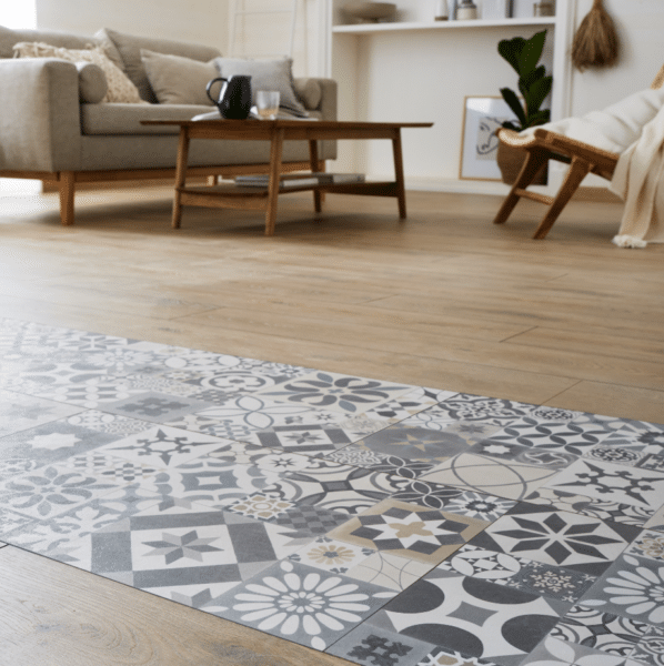 Un revêtement de sol stratifié 100% made in France. Qui imite à la perfection le bois, le béton, le carreau de ciment ou encore le marbre.