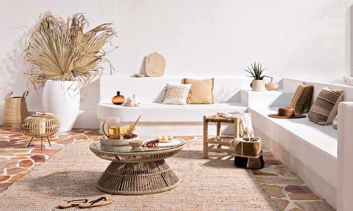Jouez l’ambiance estivale dans un salon ou une chambre aux murs immaculés. De grandes banquettes blanches, une table basse en rotin tressé et un tapis en corde jeté négligemment sur le sol. Le soleil n’a plus qu’à illuminer la scène !