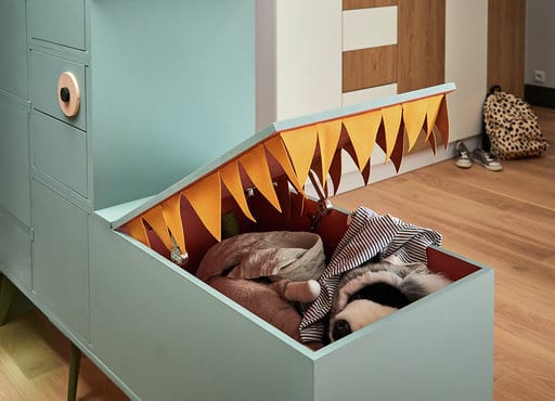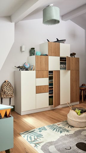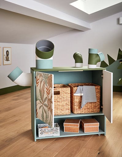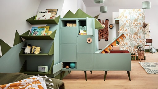 Grâce à ses rangements, les enfants sont heureux de retrouver leur espace et de participer aux tâches de la maison. En s’inventant plein de nouvelles histoires, ils prennent également davantage de responsabilités.