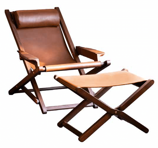 En cuir, la chilienne Emile et son repose-pieds donneront un côté vacances à votre intérieur.