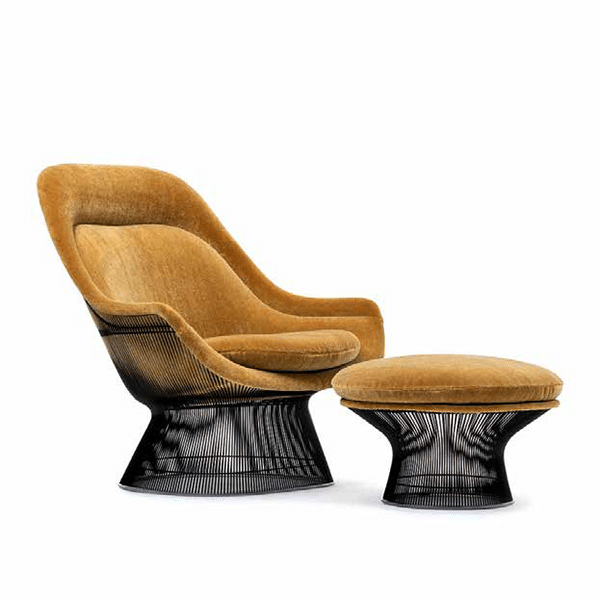 Pour le fauteuil Platner et son repose-pieds dont le piètement est composé de tiges de métal recourbées et soudées.