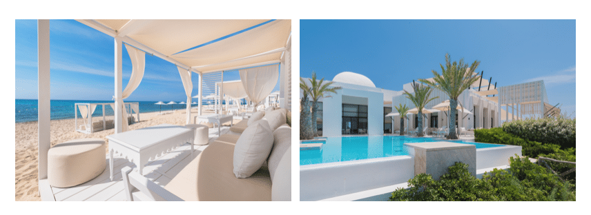 Ce 5 étoiles réservé aux plus de 16 ans propose 130 suites offrant toutes la vue sur la Grande Bleue. Ses blanches terrasses se déploient le long de deux scintillantes piscines extérieures. Et d’une longue plage équipée de gazebos VIP pour couples ou petits groupes d’amis. Un des nouveaux services exclusifs lancés cette année.