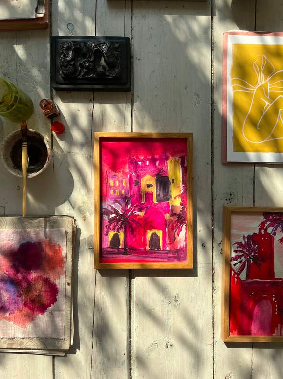LA VILLE ROUGE est peinte avec des couleurs chaudes pour une évocation de lieux multiples et lumineux…Et la délicieuse impression que le soleil caresse votre peau. Un tableau à la touche légère, qu’apporte l’utilisation de pinceaux japonais.. Disponible en 300 exemplaires d’impression papier, signés à la main par l’artiste.