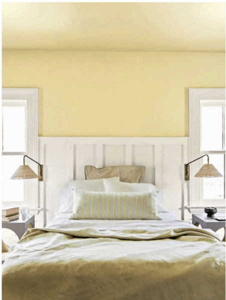 Un rideau léger qui laisse filtrer le soleil naissant et voici la chambre qui baigne dans un halo de lumière douce. Des teintes fraîches, sans être mièvres, vous apportent joie et dynamisme dès potron-minet ! Une option parfaite si votre chambre est aussi dédiée au travail et à la concentration. Les nuances fraîches, dans une gamme chaude de jaunes, sont aussi préconisées lorsque votre chambre est exposée au nord, pour lui apporter luminosité et pep’s.