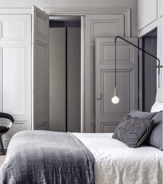 Attention, si votre chambre est sombre et – ou – exposée au nord, cette gamme risque de lui donner un petit côté triste. Dans ce cas, n’utilisez que des gris chauds.