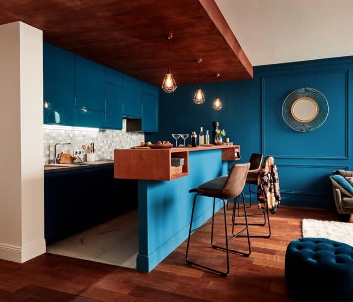 Le bleu est l’une des couleurs tendance pour la décoration de la cuisine en 2021. Comme dans cette magnifique cuisine Leroy Merlin, par exemple.