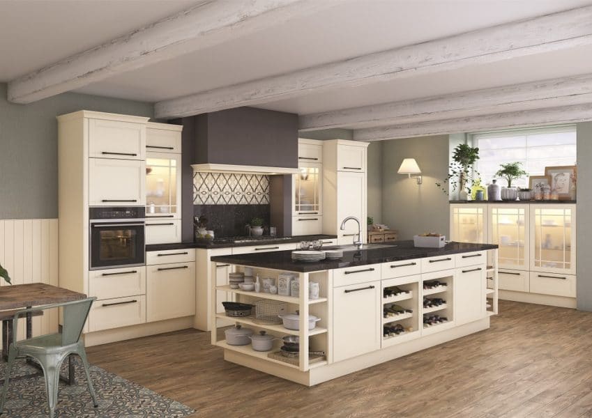 Dans une vitrine ou sur des étagères ouvertes, on expose la vaisselle et autres contenants dans la cuisine. Grand vaisselier, mur recouvert d’étagères ou bien quelques meubles avec une porte vitrée ou quelques niches pour ranger et décorer avec des jolis contenants à l’intérieur. Tant qu’on expose !