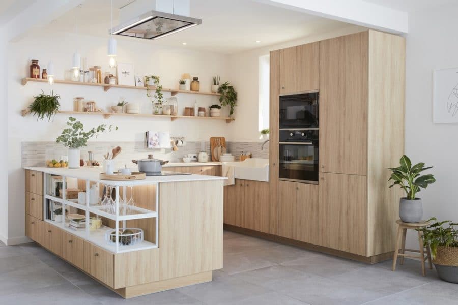 Bon à savoir : le rangement doit toujours être impeccable dans une cuisine à la déco minimaliste afin de conserver le style sobre et chic de la pièce.