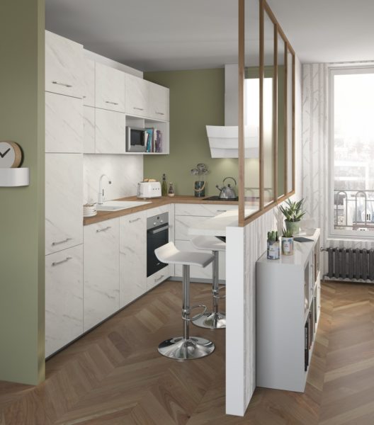 La lumière circule dans les différentes pièces. Et la belle décoration de la cuisine est visible depuis la pièce à vivre ou le couloir. (La cuisine devra, encore une fois, être bien parfaitement rangée dans ce cas.)
