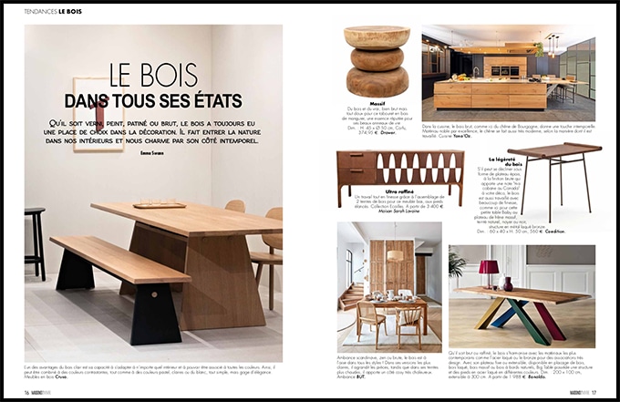 On le sait, le bois est indétronable. Il s’adapte à tout type d’intérieur, il est solide et esthétique. La rédaction de Maisons à Vivre s’est penché sur les différentes formes que peut prendre le bois pour décorer votre intérieur. Cire, peint, brut ou même patiné, venez découvrir quel bois choisir pour vos décorations et pour votre mobilier. Une chose est sûre, après avoir lu notre dossier dédié au bois, vous laisserez la nature reprendre ses droits dans votre intérieur. Que ce soit pour vos décorations, mobiliers ou vos accessoires, craquez pour le bois !