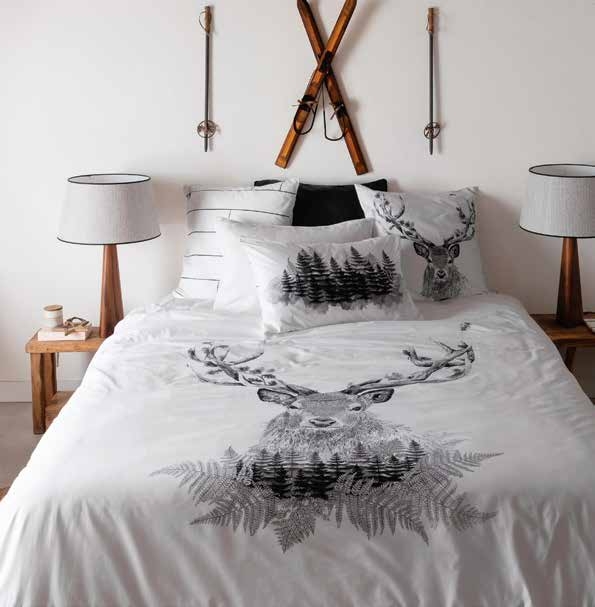 Cerfs, ours ou écureuils apparaissent sur des plaids, de la vaisselle, des coussins ou des objets décoratifs. Ces motifs évoquent immédiatement l’ambiance des chalets de montagne.