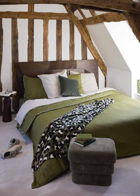 En multipliant les matières douces (laine, coton épais, velours) on obtient un décor tendre, parfait pour un espace de repos.