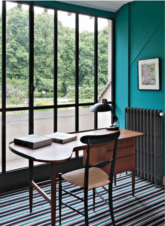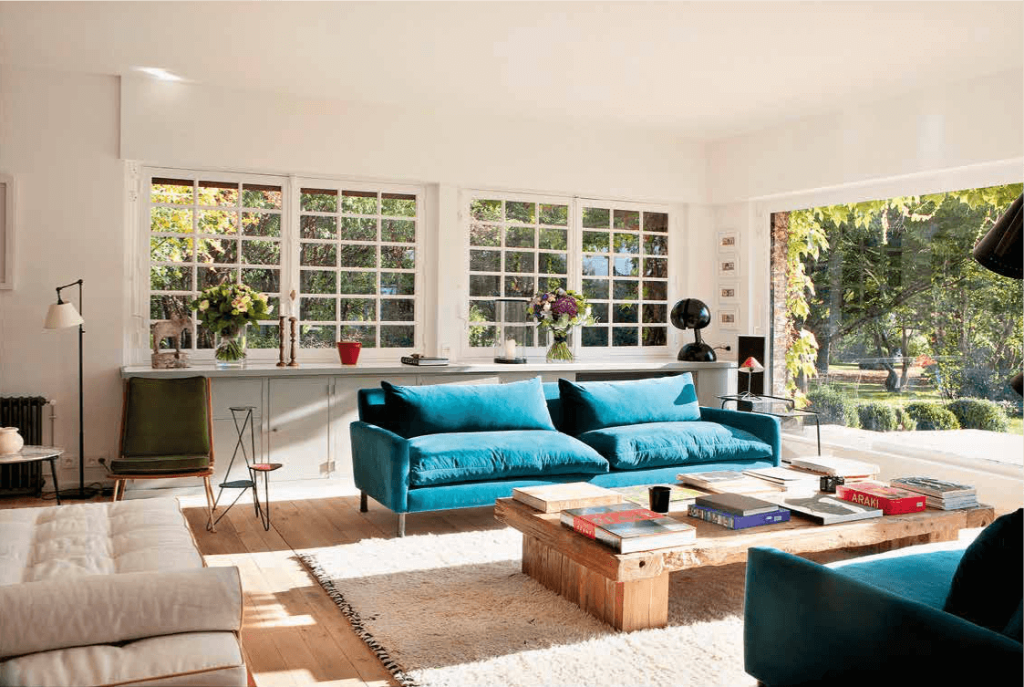 Ce bâtiment industriel des années 30, entouré par un magnifique parc qui se pare des couleurs d’automne, est un véritable havre de paix. Grâce aux objets chinés par les propriétaires et à une rénovation tout en douceur menée par le Studio Sarah Lavoine, cette ancienne usine de serrurerie s’est faite belle et moderne, tout en restant ultra chaleureuse.
