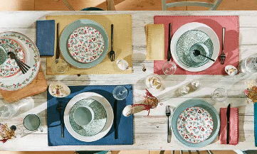 Plein de couleurs pour cette table avec des sets de table Feston bleu, vert, jaune ou rose, coton, 33 x...