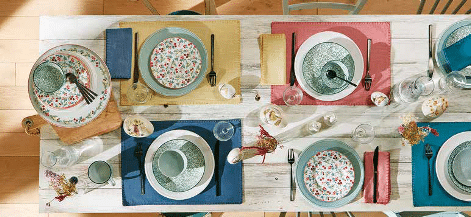 Plein de couleurs pour cette table avec des sets de table Feston bleu, vert, jaune ou rose, coton, 33 x...