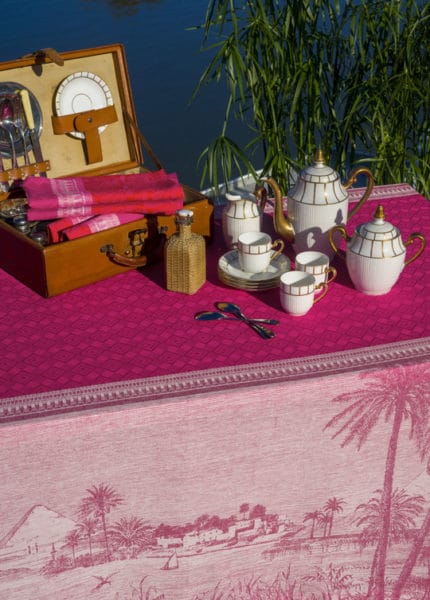 Nappe (à partir de 205€) et serviettes de table (19,95€) – collection Croisière sur le Nil 100% lin – coloris Orchidée