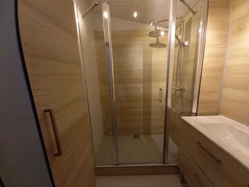 Le montage est rapide facile et sans perçage (ne nécessite pas la pose de faïence ou de carrelage). Les salles de bains sont faciles à entretenir, robustes. Les cabines de douche sont 100% étanches, bien sûr, grâce à un système d’assemblage unique qui ne nécessite pas de joints. Les parois en verre et les portes sont traitées anticalcaire.