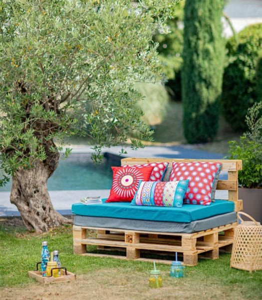 Indispensables sur le salon d’extérieur, les coussins d’extérieur. Mix and match aux couleurs flashy pour donner du pep’s à la décoration (6,99€ l’un) ou Coco Colvert, en coton et dans des tons verts (19,99€ l’un), pour rappeler la nature. Il nous faut des coussins !