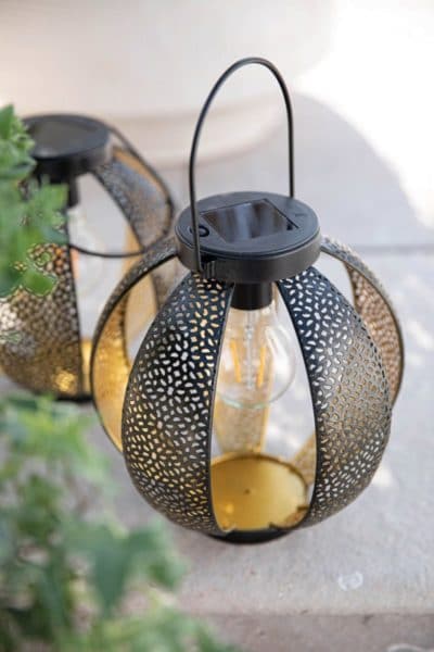 Mais ce n’est pas tout. La décoration à l’extérieur emprunte à la déco intérieure. Tapis et autres objets sont les bienvenus. Le tapis Panama en polypropylène recyclé donne le ton (vert) sur la terrasse. Les lanternes solaires Patio Watt & Home, en verre et métal, apportent lumière et ambiance chaleureuse le soir au jardin. Pourquoi pas un brasero ? Pour regarder les flammes romantiques jouer à l’intérieur.