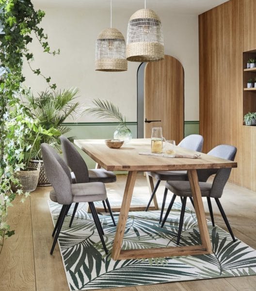 La nouvelle collection printemps 2021 « Ressource » de BUT joue avec les tons naturels et les matériaux végétaux et minéraux. Bois, rotin, métal, nuances de verts et crème…