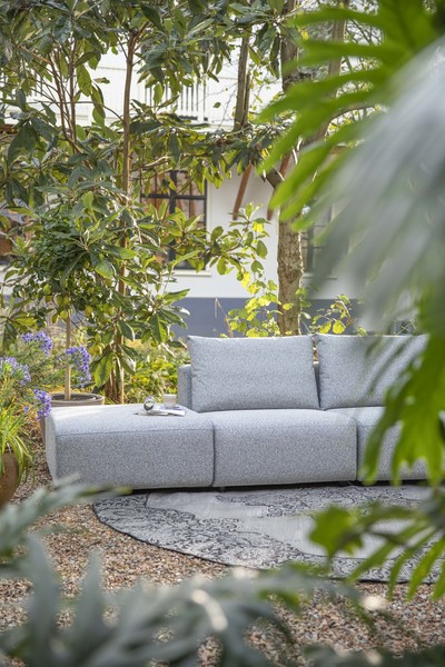 Le nouveau canapé outdoor modulaire Breeze transforme votre jardin, votre toit ou votre balcon en un lieu de détente idéal. Grâce à son tissu déperlant, plus besoin de ranger le canapé à l’intérieur pendant l’hiver ou de stocker les coussins à l’intérieur chaque nuit. Les coussins inclinés vers l’arrière aident à évacuer l’eau dans une petite gouttière astucieuse cachée dans le cadre du dossier. Le canapé est modulaire, ce qui vous permet de construire votre composition d’assise comme vous le souhaitez. Breeze est fabriqué en Europe et disponible en gris clair.