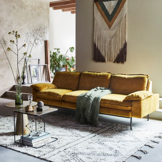 Longtemps considéré comme démodé, le velours fera son grand retour dans le monde de la déco en 2021. Pour éviter cet effet kitsch qui a souvent terni sa réputation, ce matériau s’utilisera en touches délicates. Dans le salon, il habille le canapé ou un fauteuil pour un rendu à la fois douillet et réconfortant.